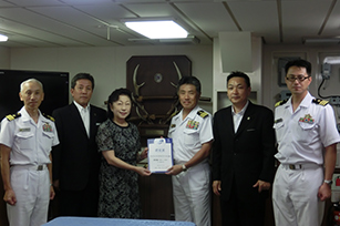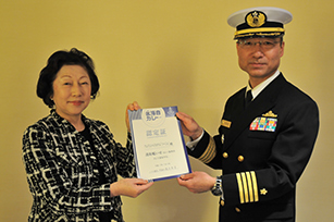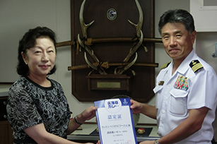 護衛艦いせ艦長 ・ 一等海佐 髙田昌樹様より、護衛艦いせカレーの再認定を頂きました。