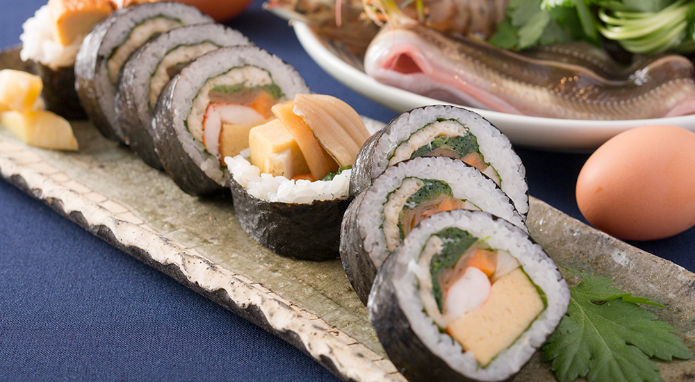 寿司職人がこだわって作る玉子焼き、音戸産の穴子、朝ゆで海老がメインの呉濤自慢の巻き物です。